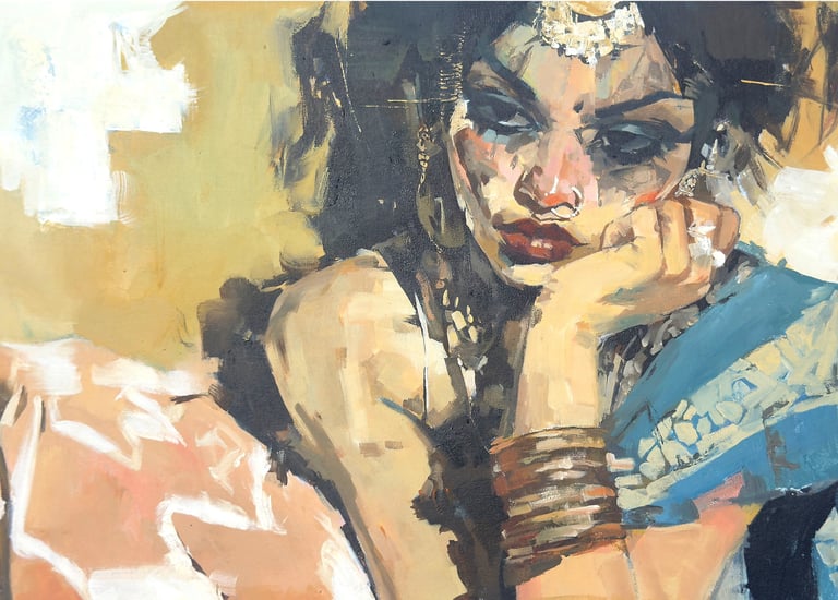 "An independent painter with 22+ years of experience, amplifying Gen Z feminist voices through powerful, emotive portraiture."